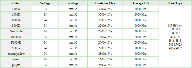 BLESK 24V 시스템은 OEM공급용 이그나이터 분리형 안정기을 사용하여 트럭 또는 버스 등 24V에 사용할 수 있는 시스템입니다.