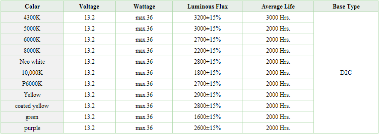 D2C HID전구는 OEM 전구 교체용으로 당사에서 특수 설계 제작된 D2S, D2R겸용 베이스를 사용하며, 이미 E-MARK 등 유럽인증을 받은 기술력을 바탕으로 생산된 전구의 완성품입니다.